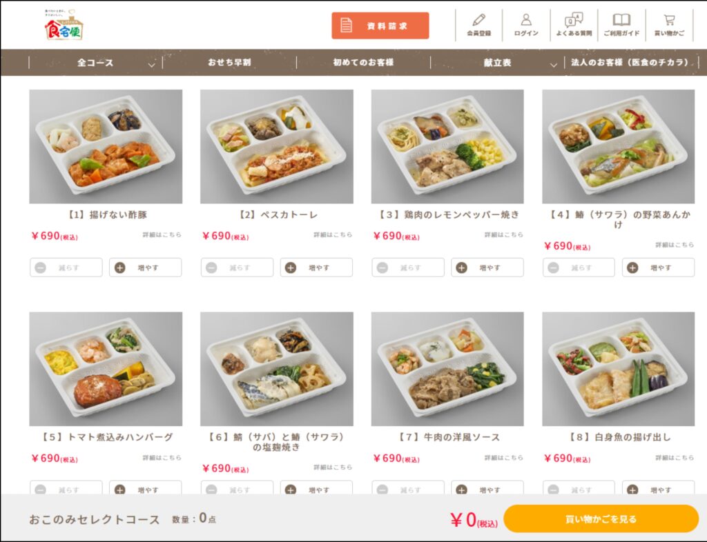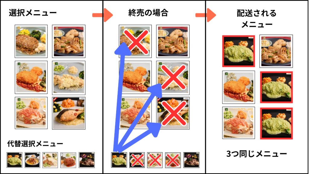 似たようなメニューが多くなるほか、自分の好みのメニューばかり注文する方が多く、どうしても同じようなメニューが届きます。
